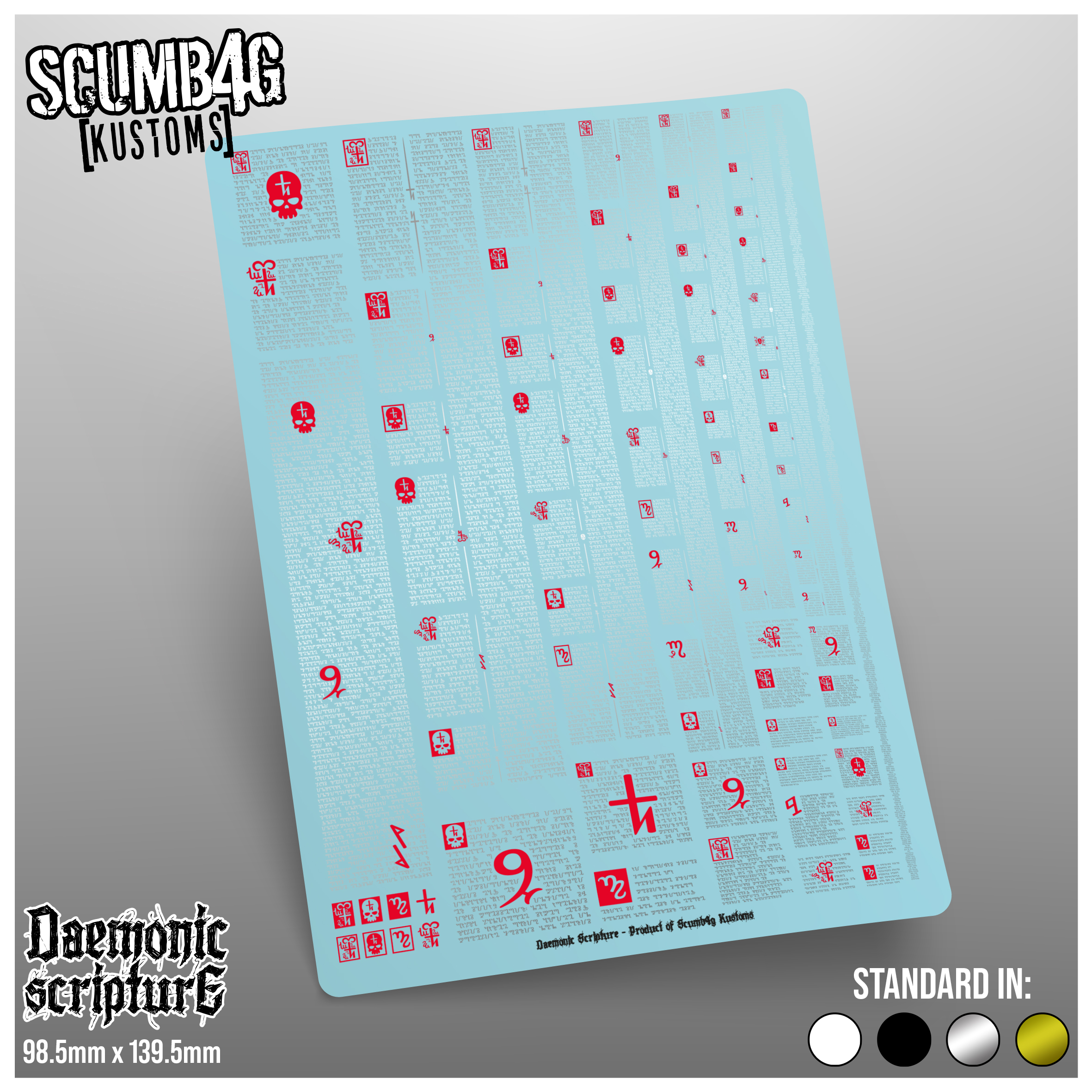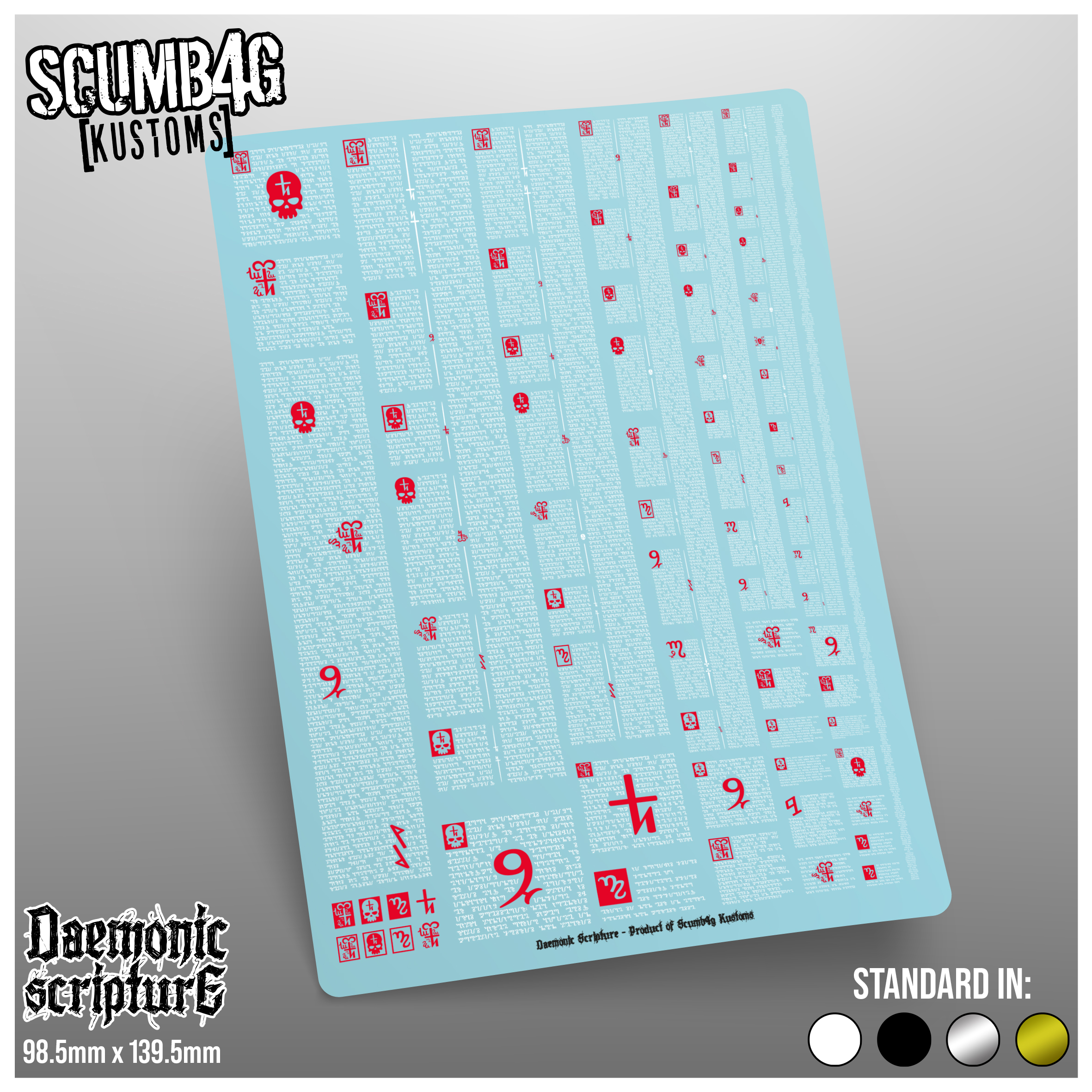 Elevate your miniatures with these unique decals, featuring paragraphs of daemonic text in a range of sizes and widths. Cut them to fit your specific needs and add a touch of elegance to your miniatures, terrain, and accessories.