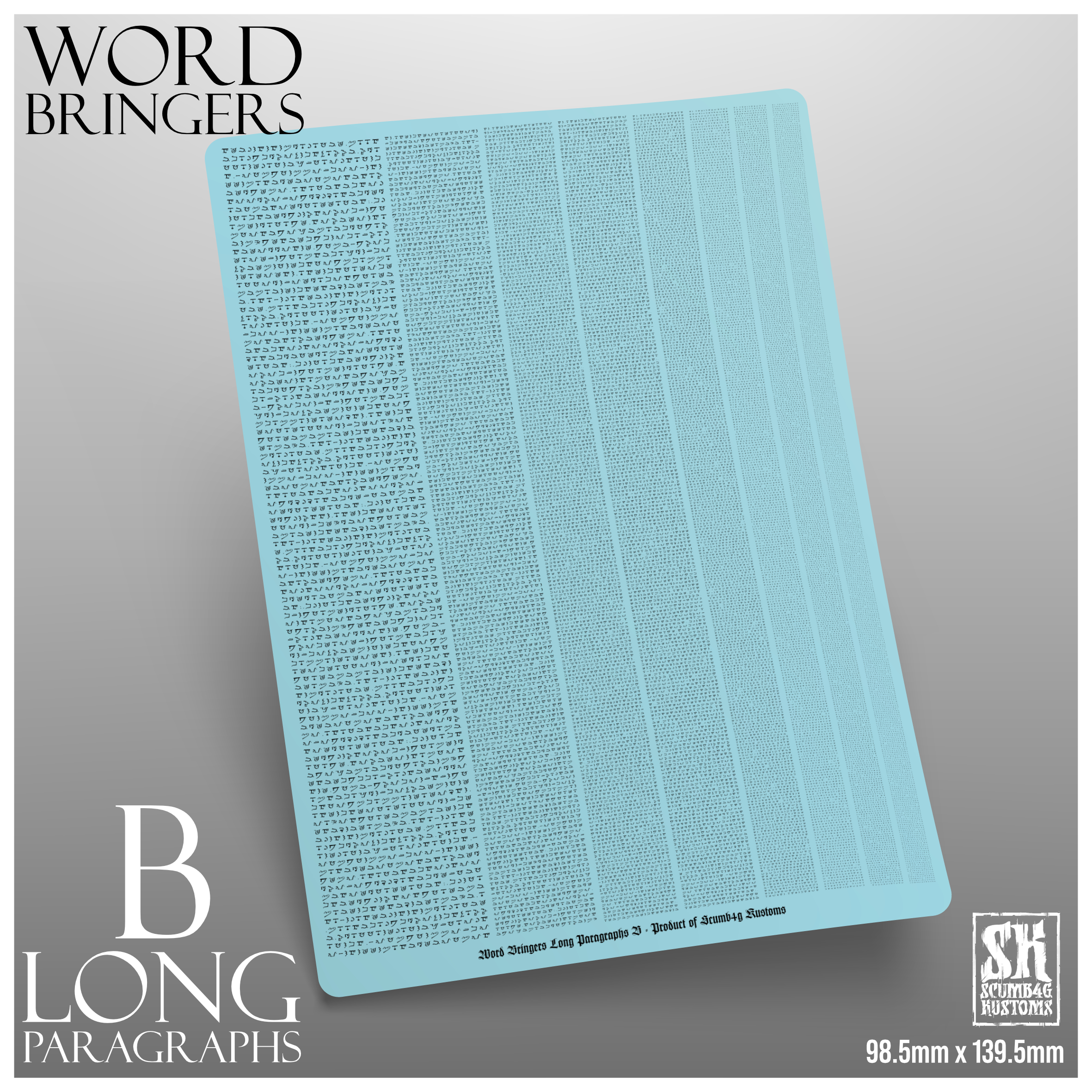 Elevate your miniatures with these unique decals, featuring paragraphs of runic text in a range of sizes and widths. Cut them to fit your specific needs and add a touch of elegance to your miniatures, terrain, and accessories.